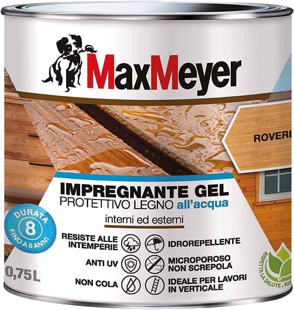 MAXMEYER Impregnante Gel Acqua Rovere 0,75 L: Protezione Intensa e Finitura Naturale per il Legno!